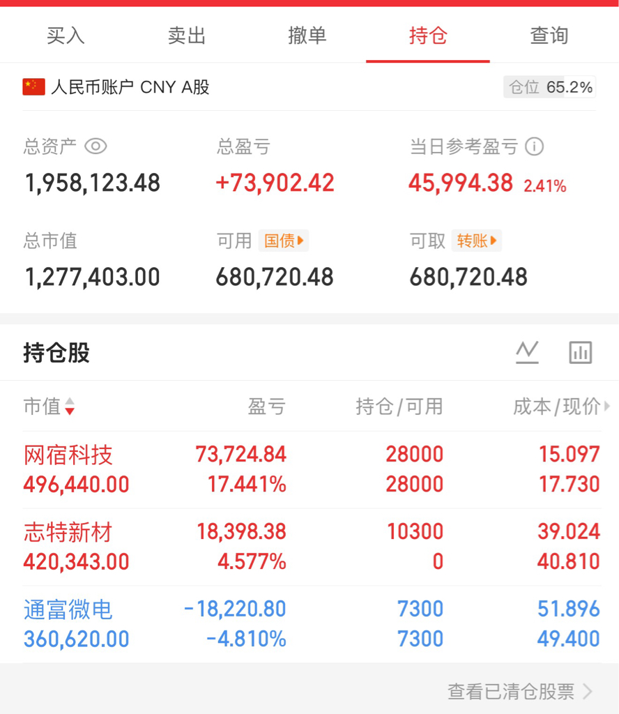 2.3调清:锁:通富微电、网宿科技开:志特新材