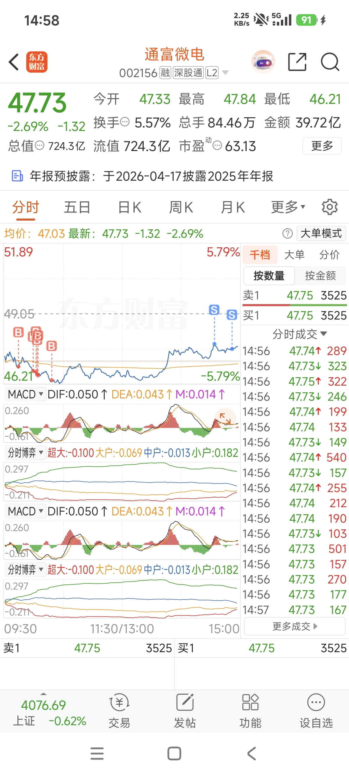 $通富微电(SZ002156)$ 补仓做T,成本降了一块,真不容易!