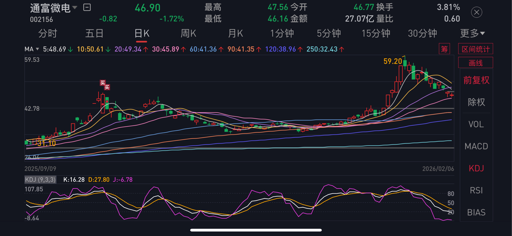 $通富微电(SZ002156)$ 又快到成本区了
