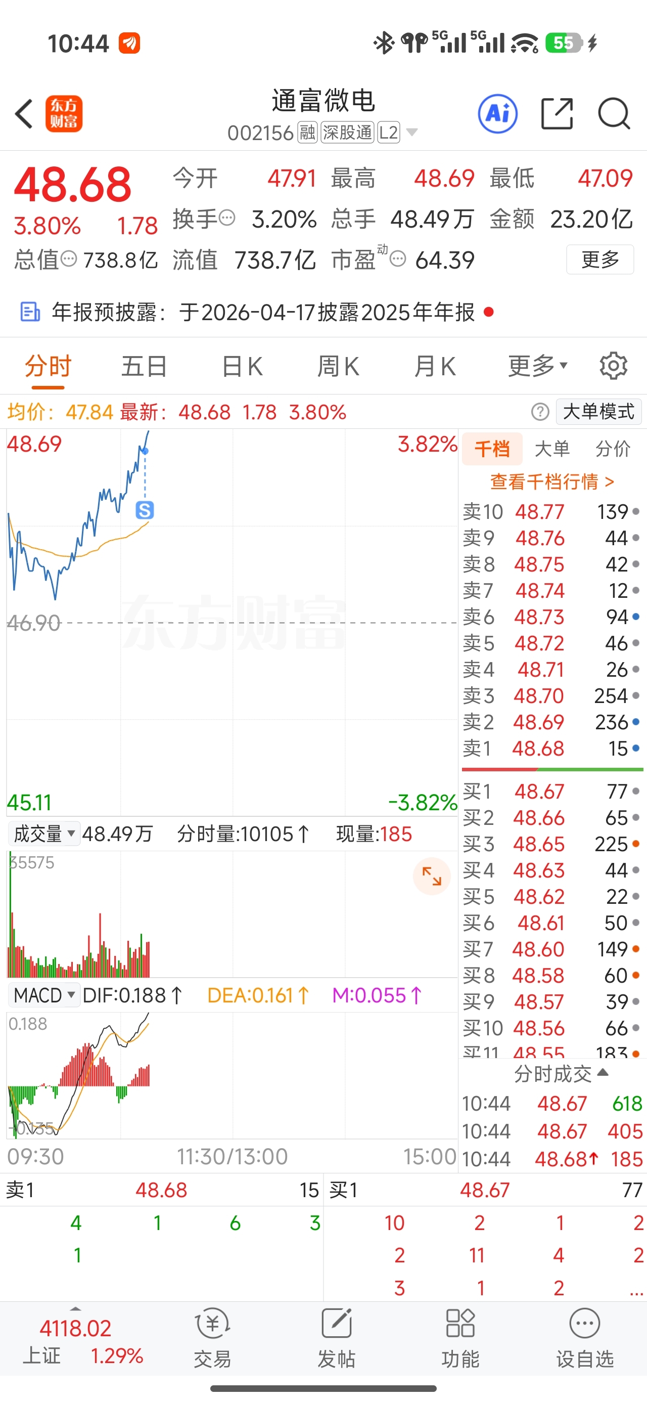 $通富微电(SZ002156)$ 先把上周46.98买的一笔先t了,底仓留着