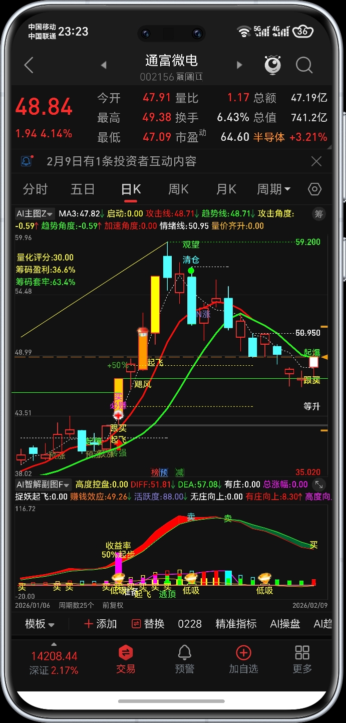 $通富微电(SZ002156)$ 突破50.95看涨停