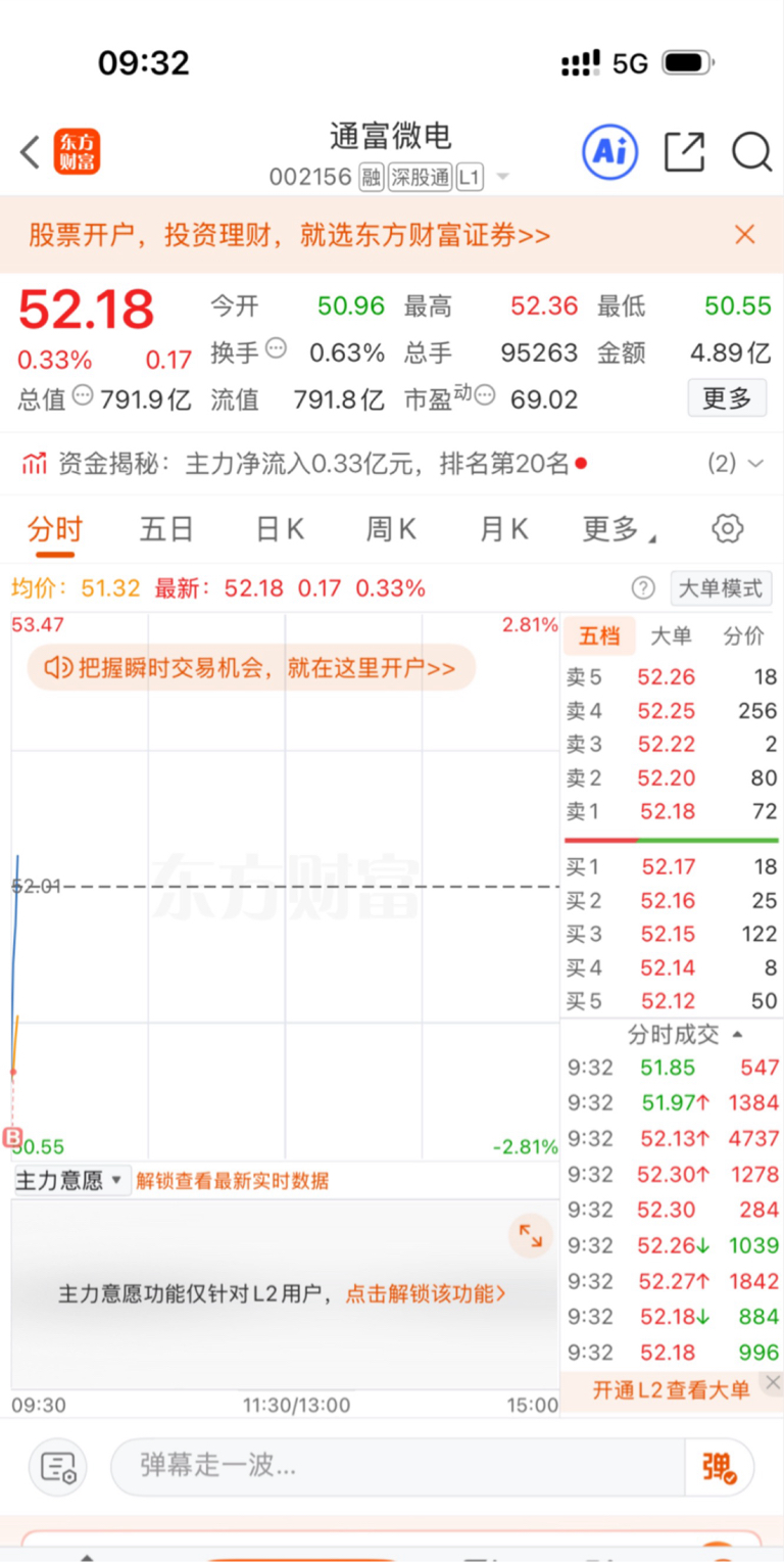 51.15选择低吸博弈$通富微电(SZ002156)$ 值得期待