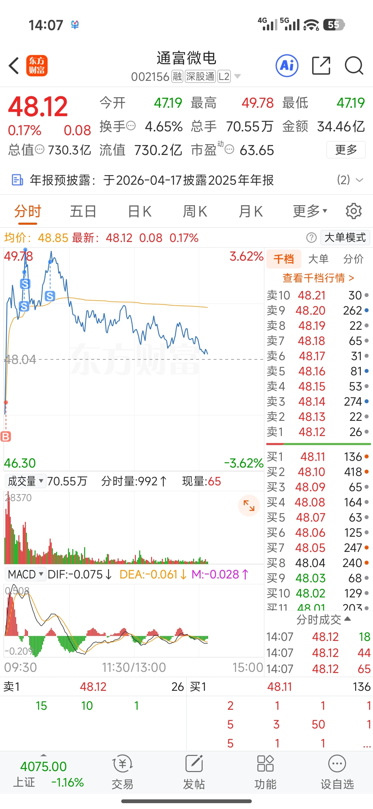 $通富微电(SZ002156)$ 跟昨天一样,下午翻绿