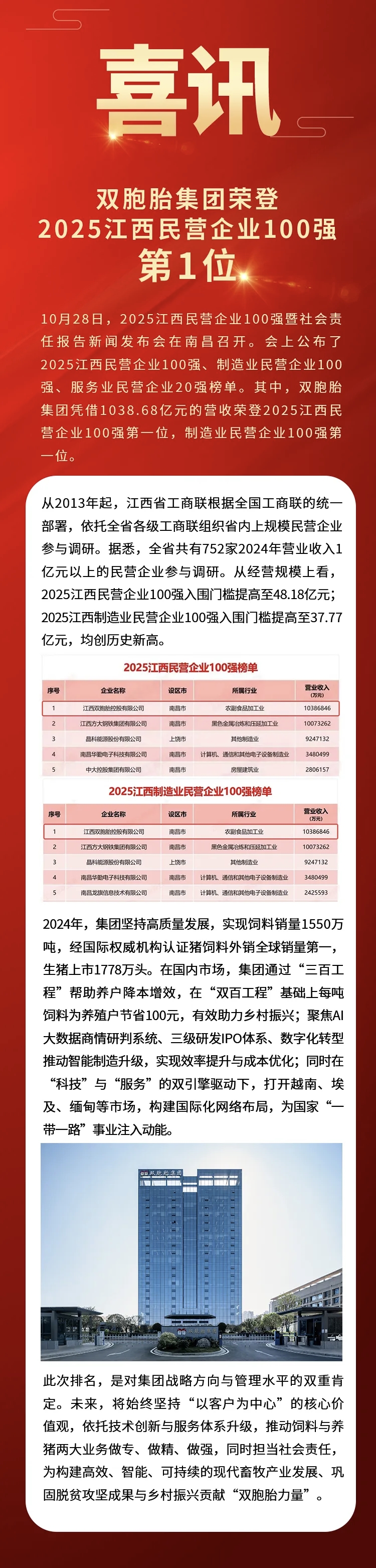 双胞胎集团,千亿级别营收,江西第一民营企业。