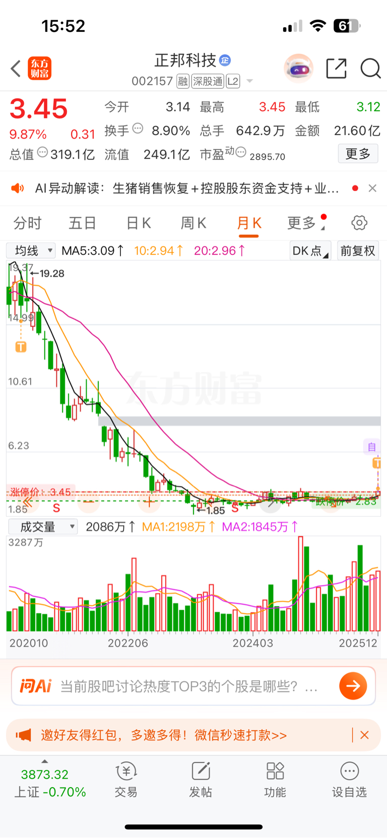 温馨提示: 1.根据《证券法》规定,禁止编造、传播虚假信息或者误导性信息,扰乱证券市场;2.用户在本社区发表的所有资料、言论等仅代表个人观点,与本网站立场无关,不对您构成任何投资建议。用户应基于自己的独立判断,自行决定证券投资并承担相应风险。《东方财富社区管理规定》