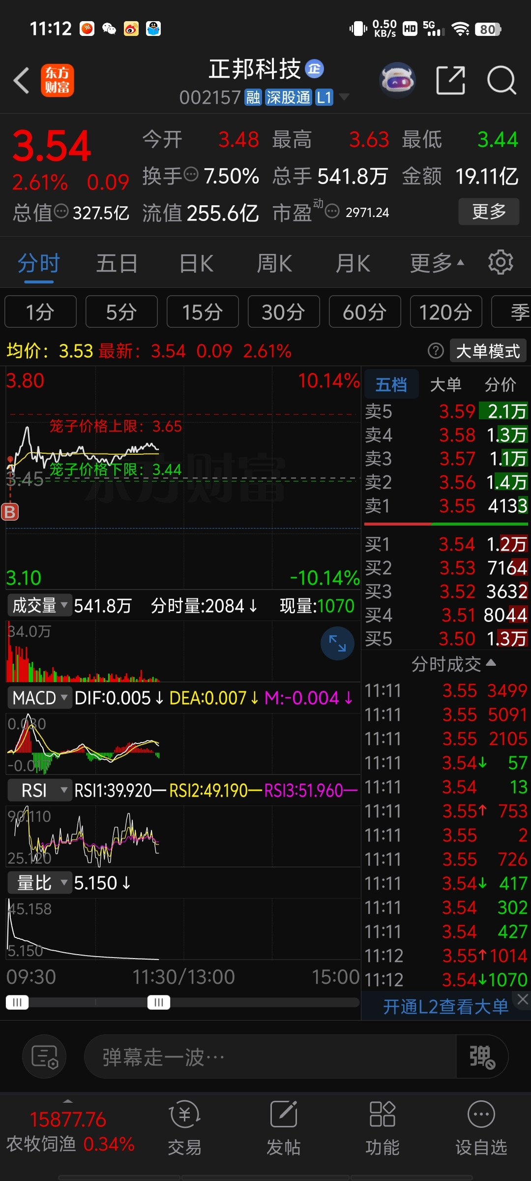 $正邦科技(SZ002157)$ 截个图星期一照着这个买卖。三天早班只能挂好单子等着命运审判了