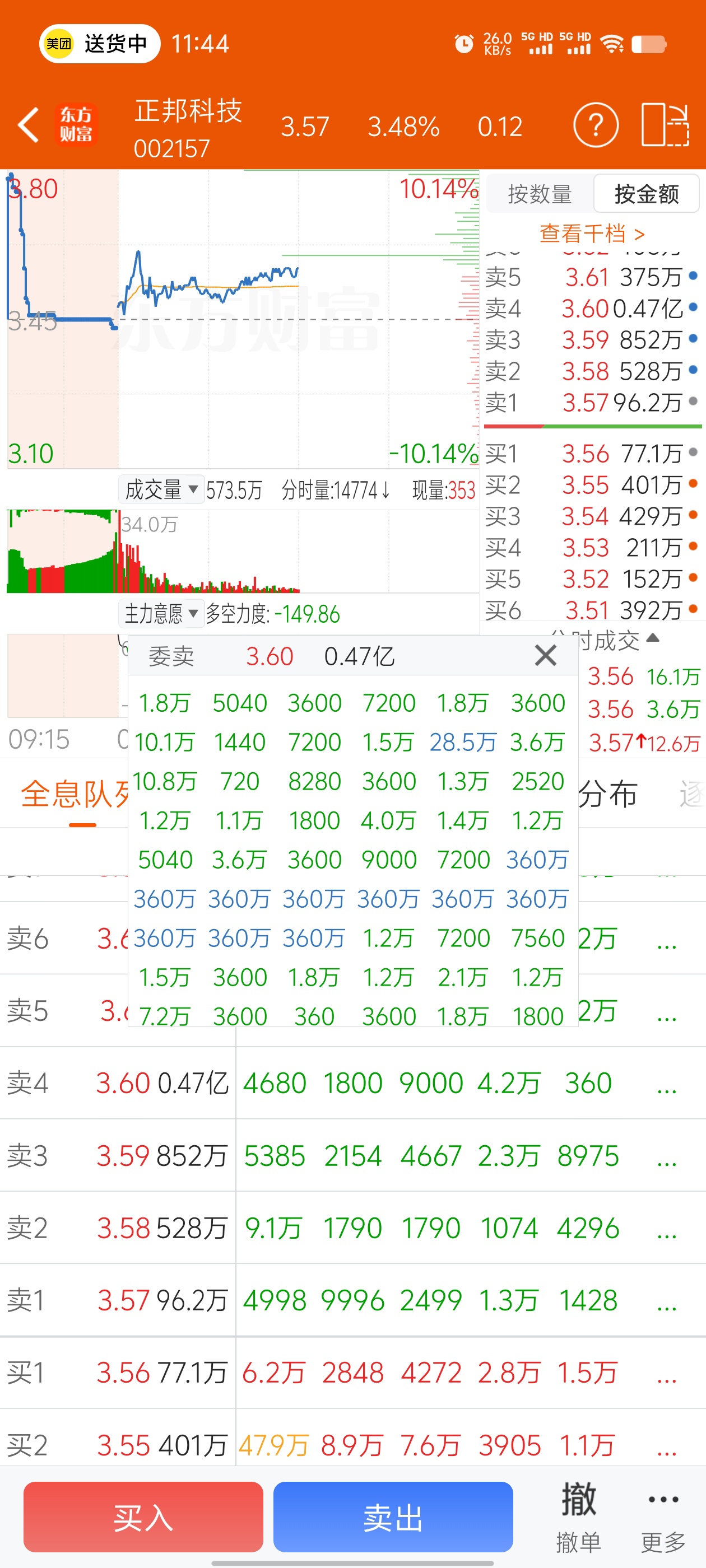 $正邦科技(SZ002157)$ 主力故意恶心我们呢,3.6的价格压10笔360万的单子。
