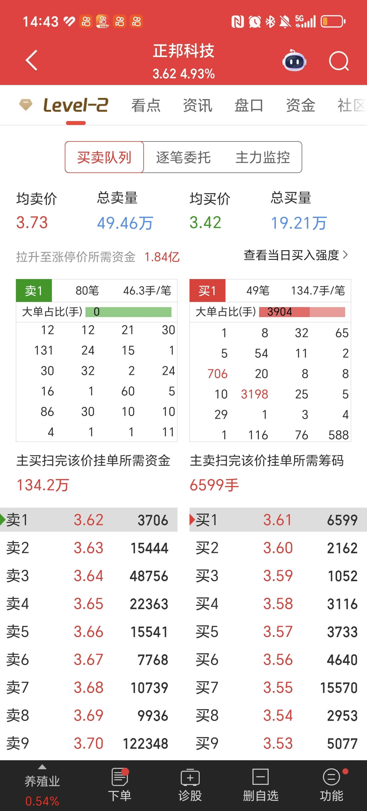 $正邦科技(SZ002157)$ 1.6亿直接吃了,就涨停了