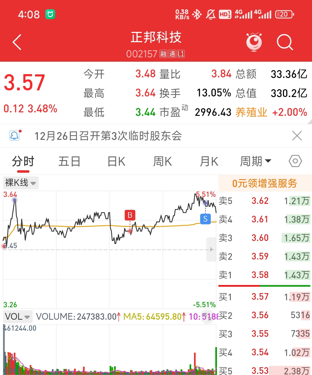 $正邦科技(SZ002157)$ 管他什么涨跌,每天TT就好
