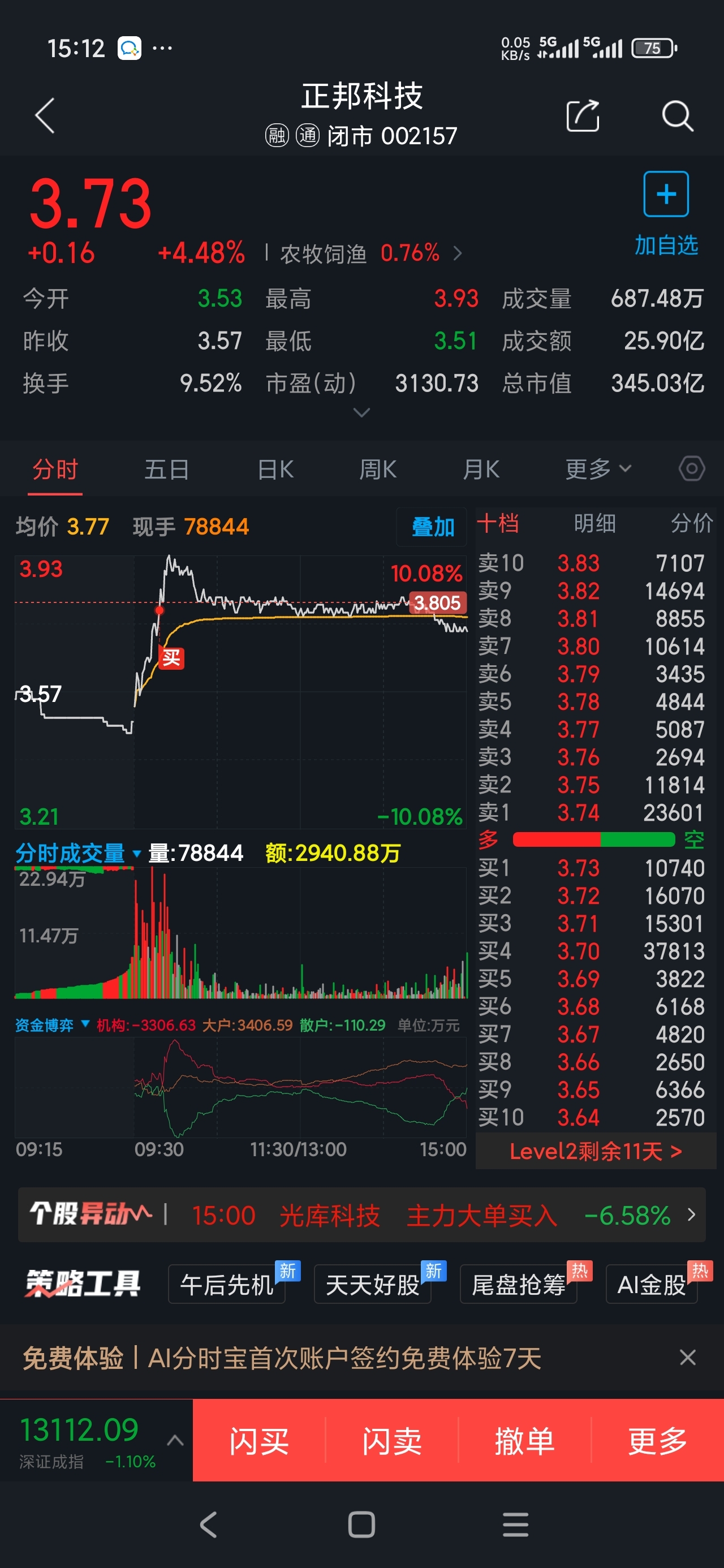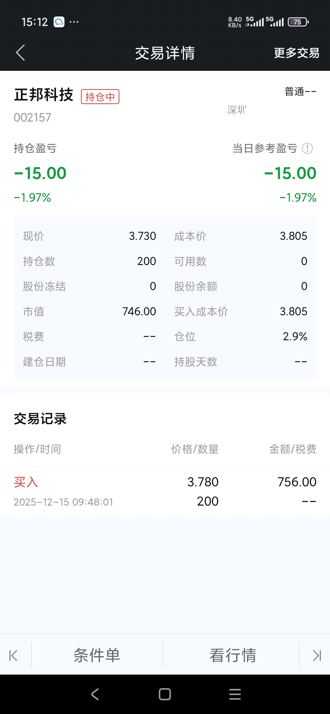 今日建仓,血亏15,就是玩。恐怕主力是被我吓跑的