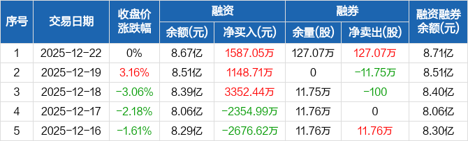 正邦科技:融资余额8.67亿元,创近一年新高(12-22)