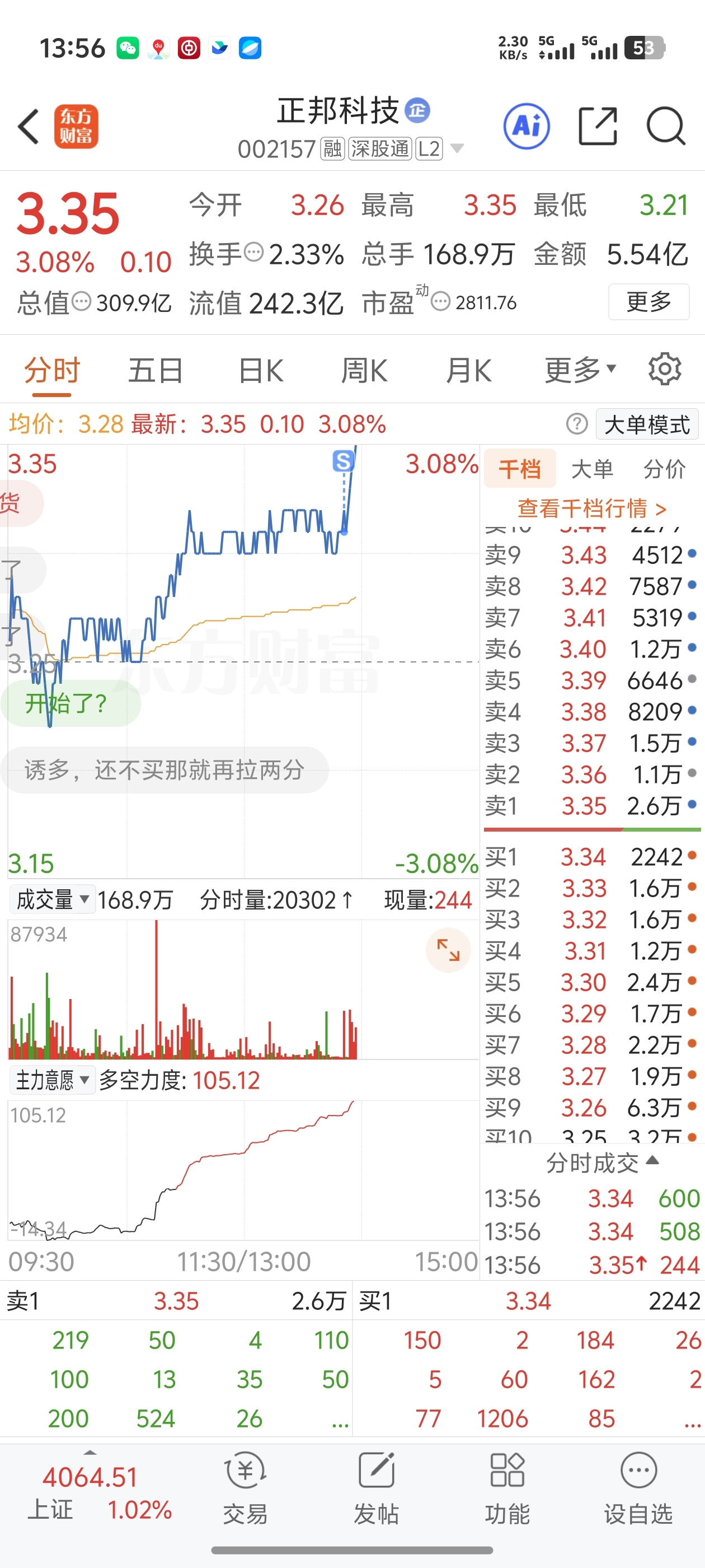 $正邦科技(SZ002157)$ 3.31出掉就上来了