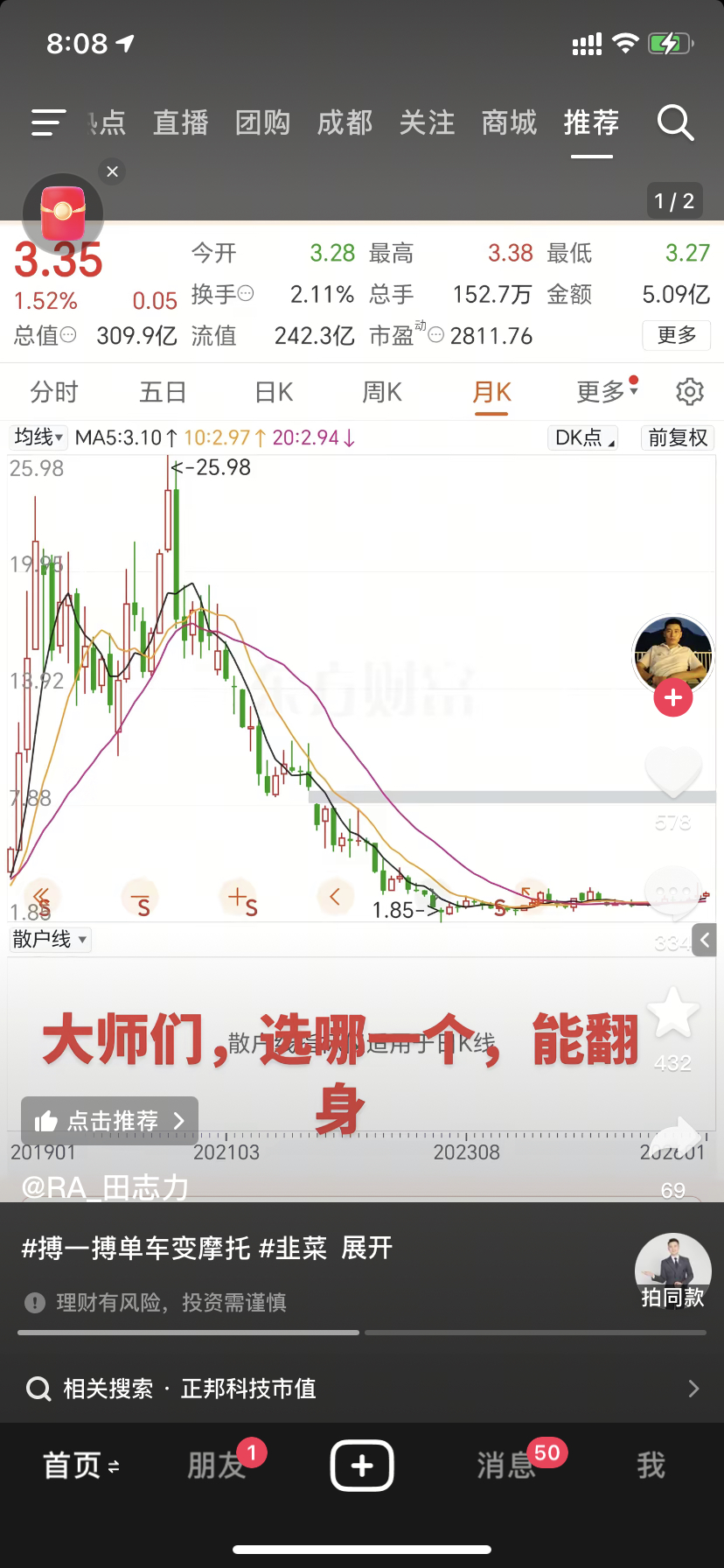 $正邦科技(SZ002157)$ 是不是就我一个人是刷到抖音来的?如果大家都是刷到抖音来的就要小心了,千万别方当韭菜。主力在抖音打广告了