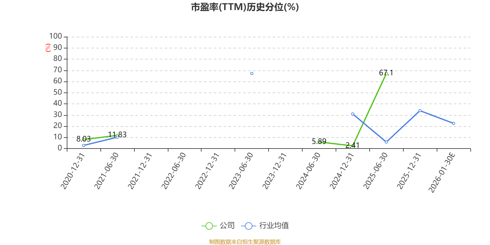 市盈率、市净率为负时,不显示当期分位数,会导致折线图中断。