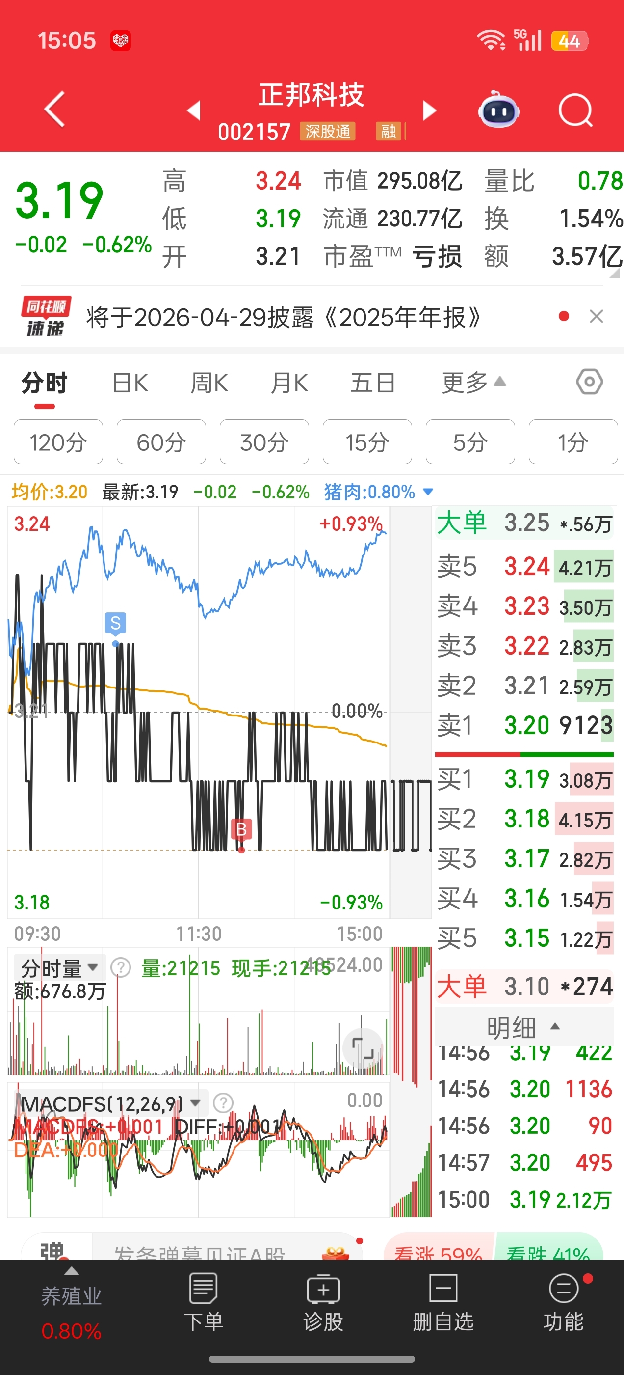 $正邦科技(SZ002157)$ 全仓T,来啊,庄,让我卖飞,成全大家