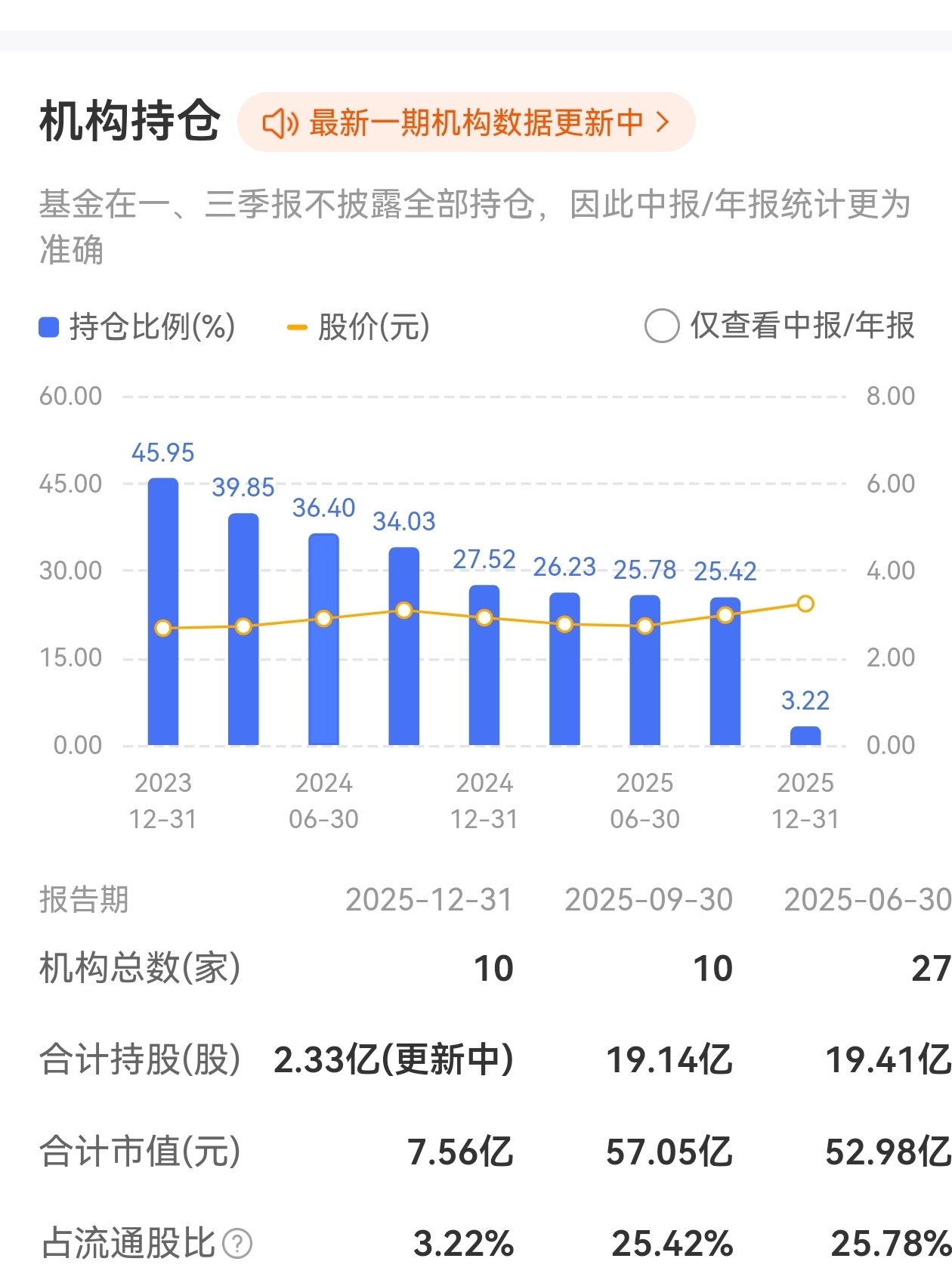 机构在12月份都跑光了。留点底仓为了后续把股价打下来再低吸。靠散户是维持不住股价