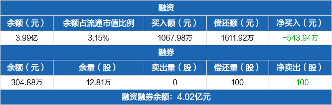 汉钟精机:融资净偿还543.94万元,融资余额3.99亿元(12-19)