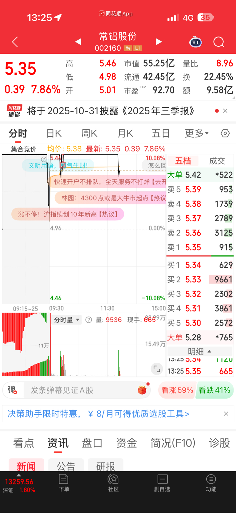 $常铝股份(SZ002160)$ 我开个口子出来接你们了快点上车等下封板