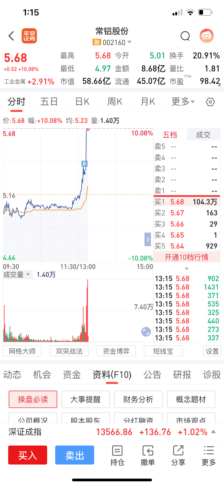 $常铝股份(SZ002160)$ 一卖就板了,真是吃不了三个菜