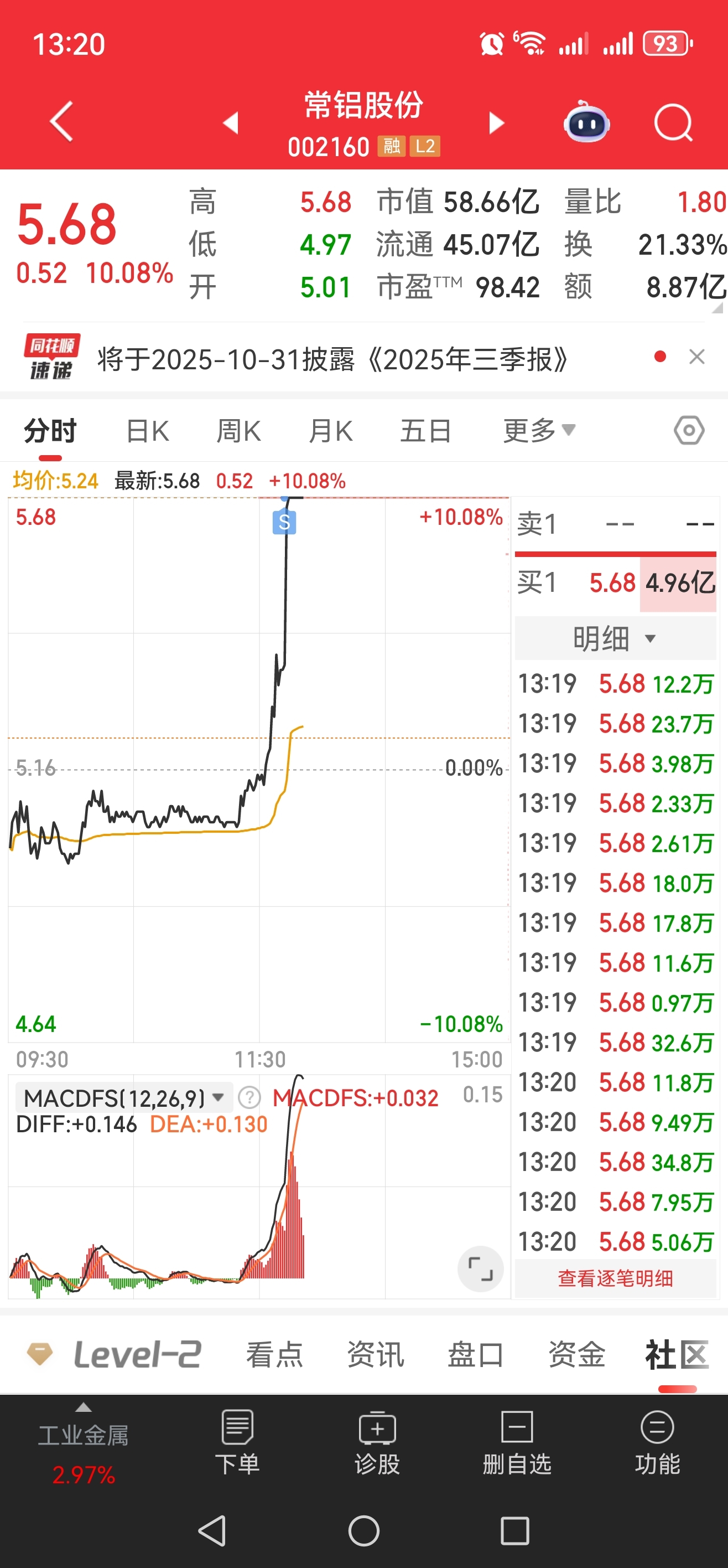 $常铝股份(SZ002160)$ 睡醒一看卖飞了。