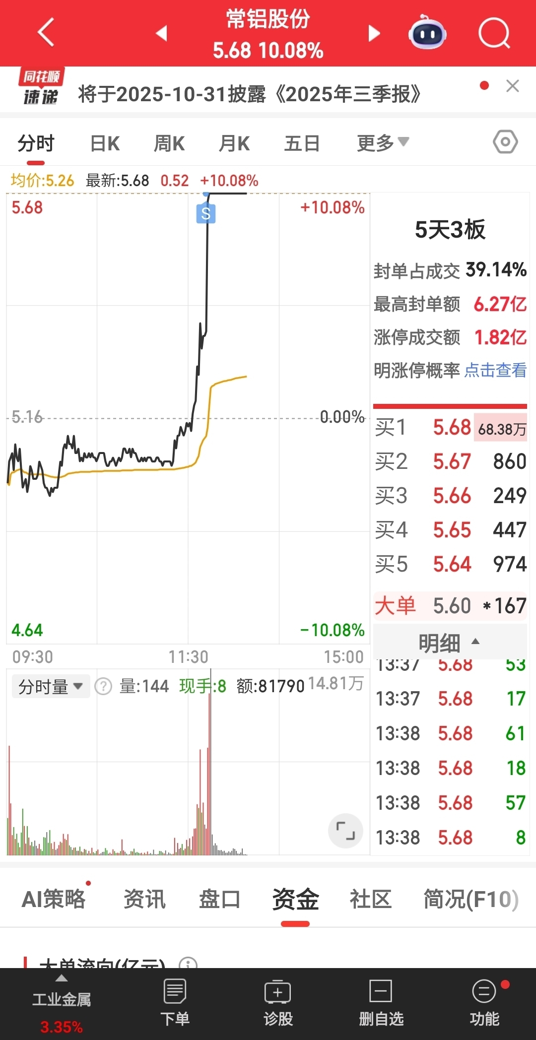 $常铝股份(SZ002160)$ 卖飞了!以为给机会做个“T”,7连板走势