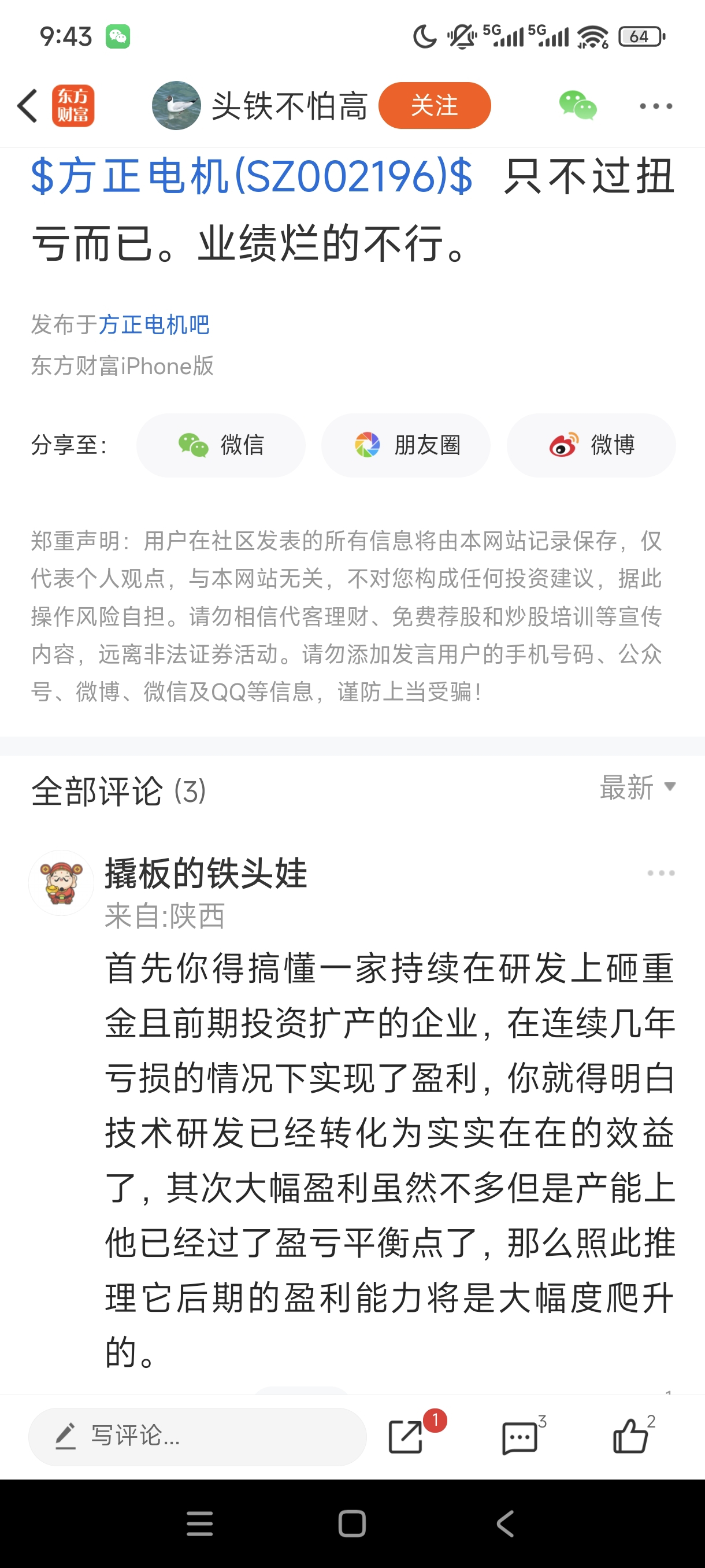 温馨提示: 1.根据《证券法》规定,禁止编造、传播虚假信息或者误导性信息,扰乱证券市场;2.用户在本社区发表的所有资料、言论等仅代表个人观点,与本网站立场无关,不对您构成任何投资建议。用户应基于自己的独立判断,自行决定证券投资并承担相应风险。《东方财富社区管理规定》
