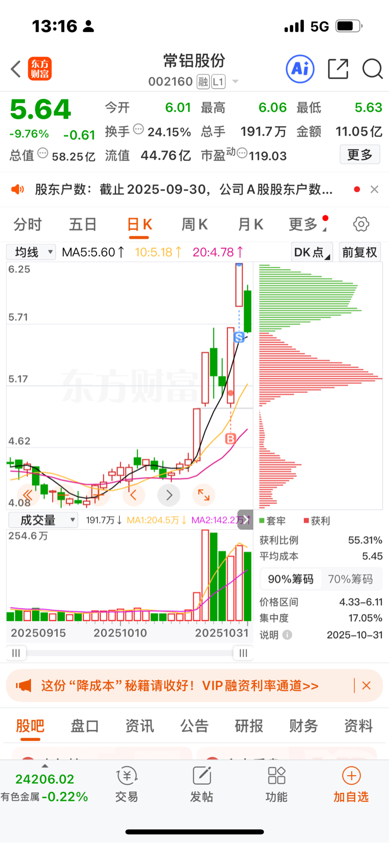$常铝股份(SZ002160)$ 还好昨天涨停卖掉了