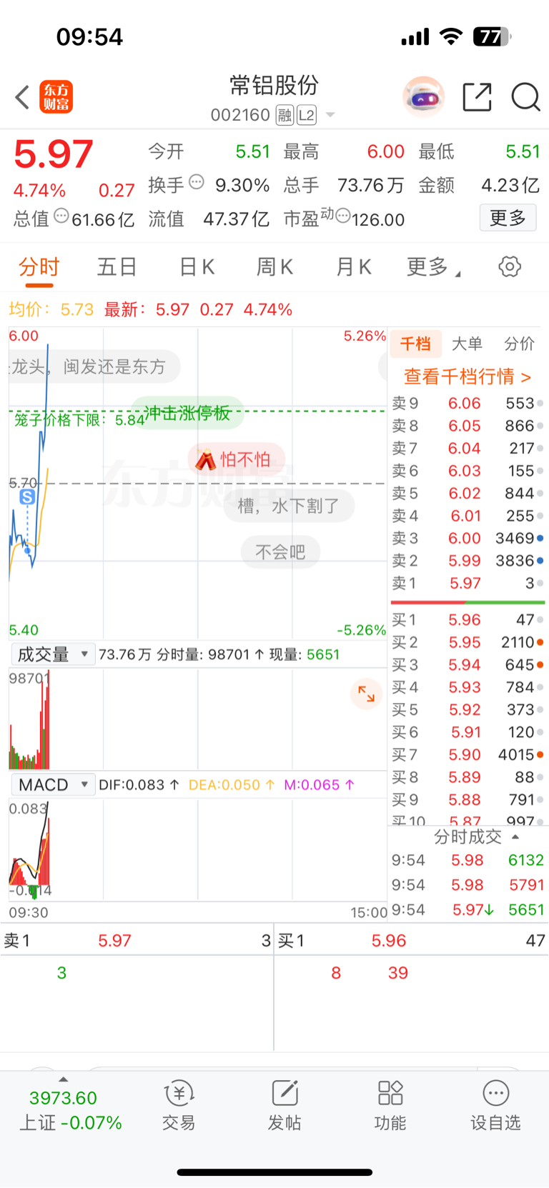 $常铝股份(SZ002160)$ 密码的 ,刚卖就涨