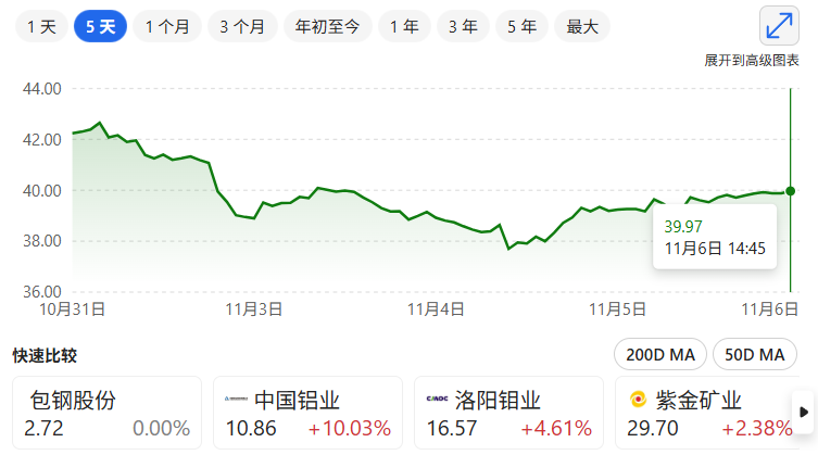 江西铜业:作为国内综合性铜生产龙头,伴生金、银产量领先,此前板块行情中均率先发力。技术面回调缩量,资金未撤离,目前已站上 5 日线,站稳则有望冲击前期 43 元附近高点。