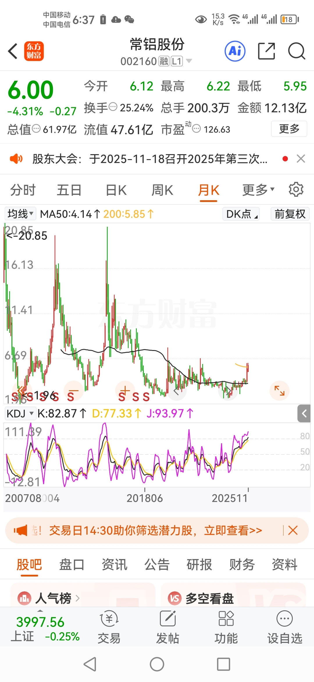 $常铝股份(SZ002160)$ 来看月线的,但凡能看月线的都不会亏!