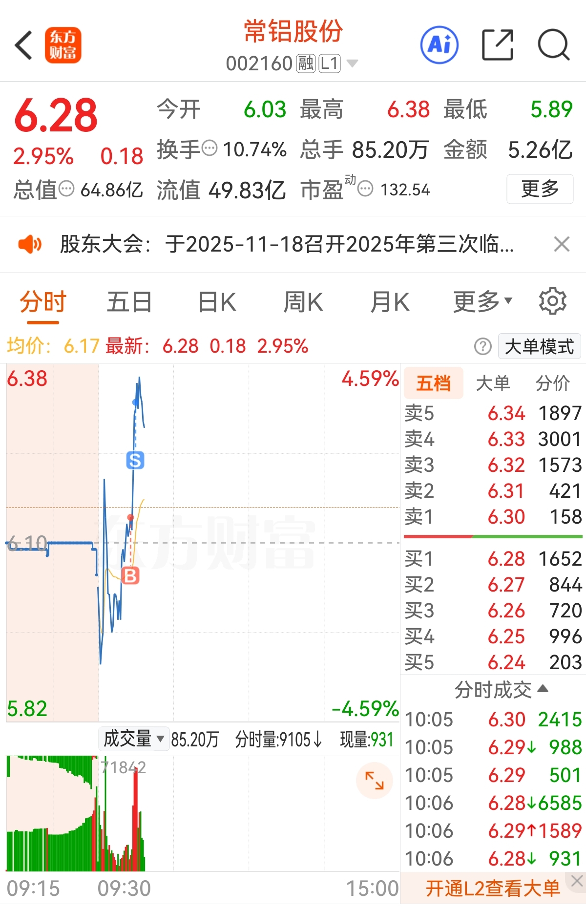 $常铝股份(SZ002160)$ 做个T,不然成本线还在上方
