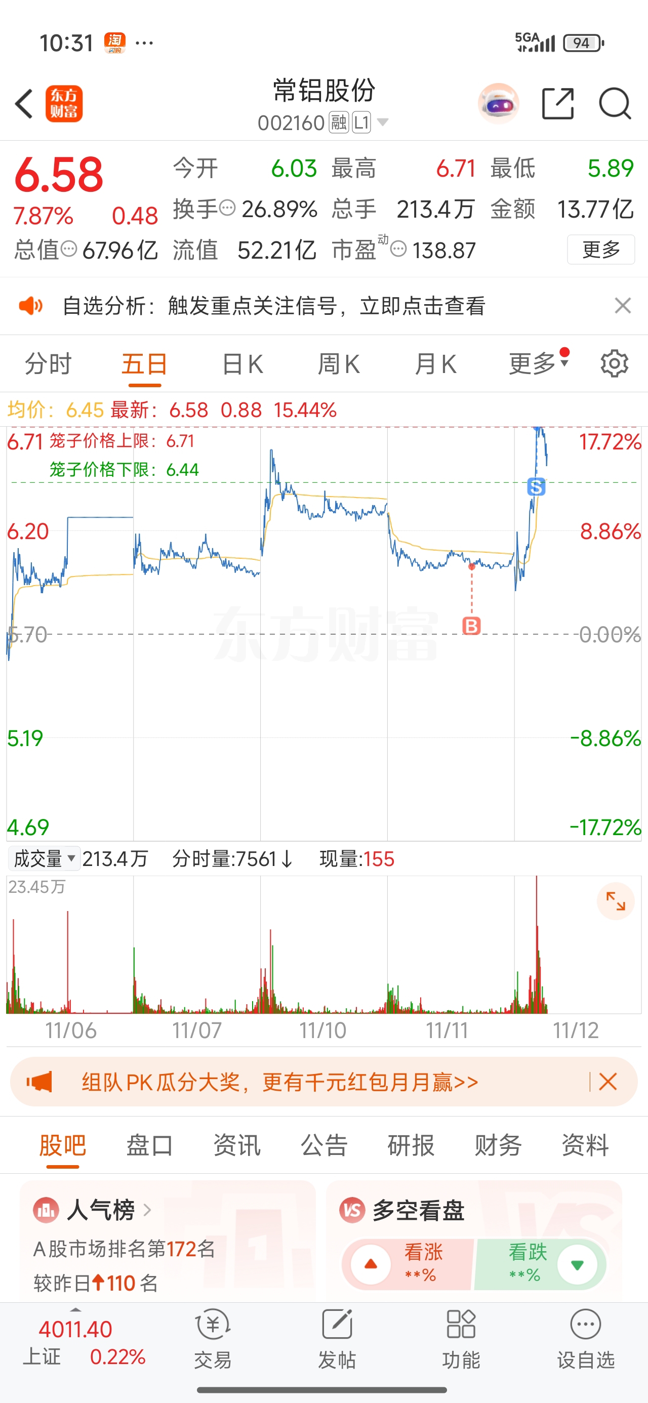 $常铝股份(SZ002160)$ 走了走了,留下的发财