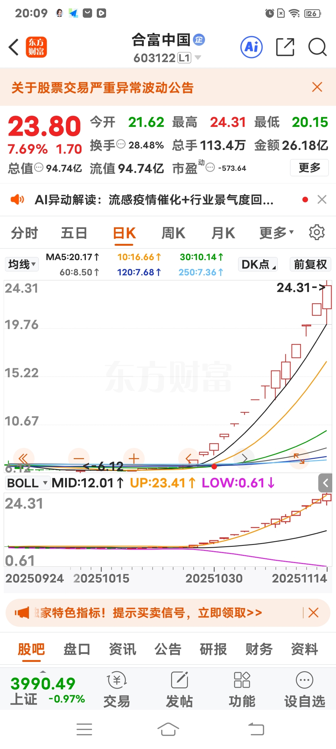 假如未来你遇上跟“合富中国;一样的股票连续上涨,你在第一个涨停板7.3买进,在什