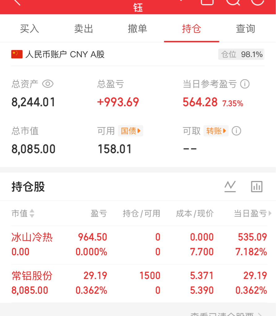 手滑大王$常铝股份(SZ002160)$ $冰山冷热(SZ000530)$