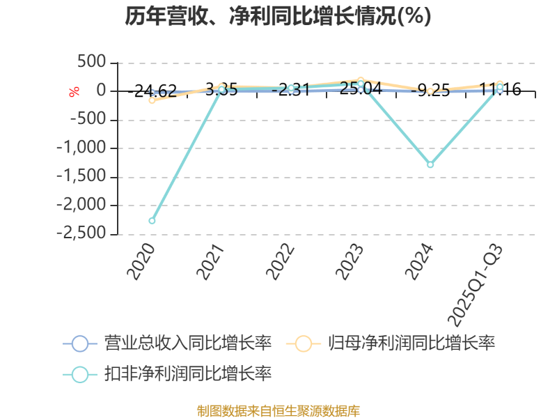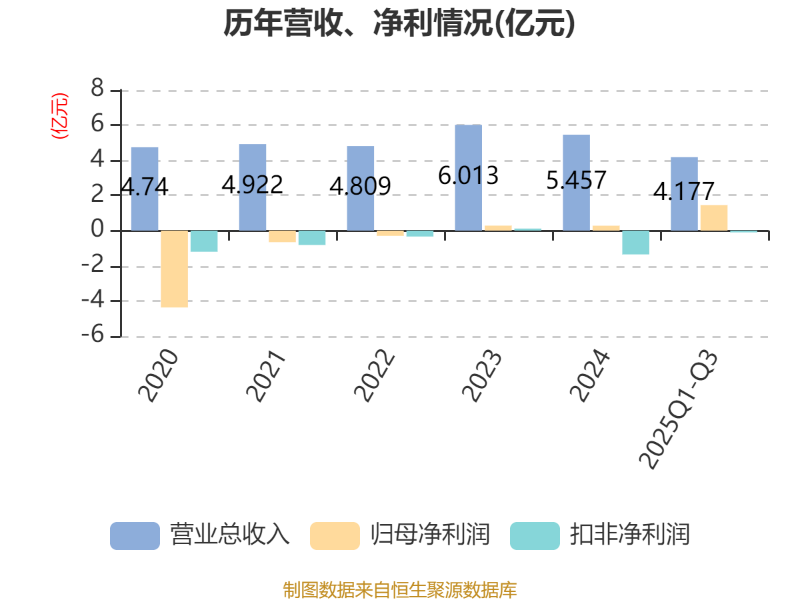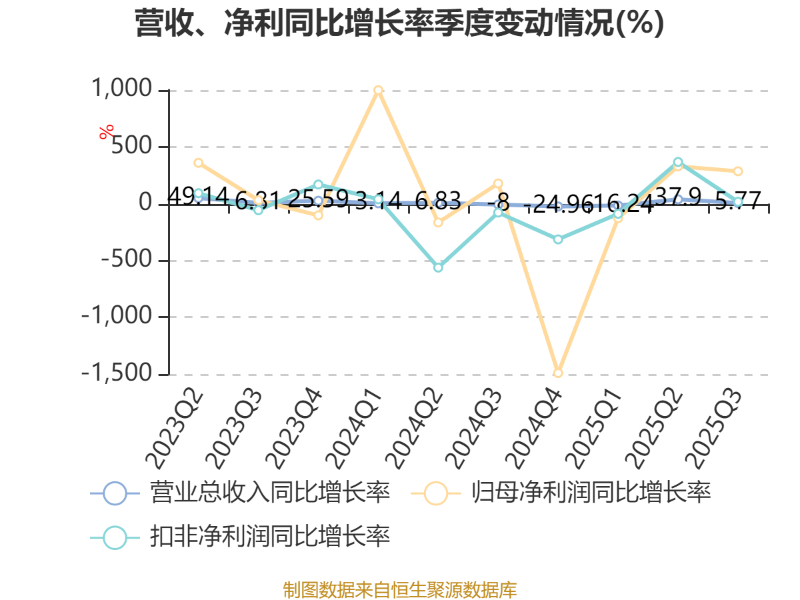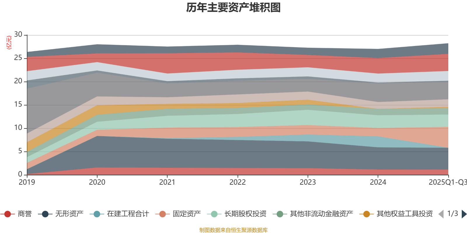 资产重大变化方面,截至2025年三季度末,公司固定资产较上年末增加149.78%,占公司总资产比重上升9.24个百分点;在建工程合计较上年末减少100%,占公司总资产比重下降8.7个百分点;交易性金融资产合计较上年末减少5.01%,占公司总资产比重下降1.34个百分点;其他权益工具投资占公司总资产的1.06%,上年末为0。