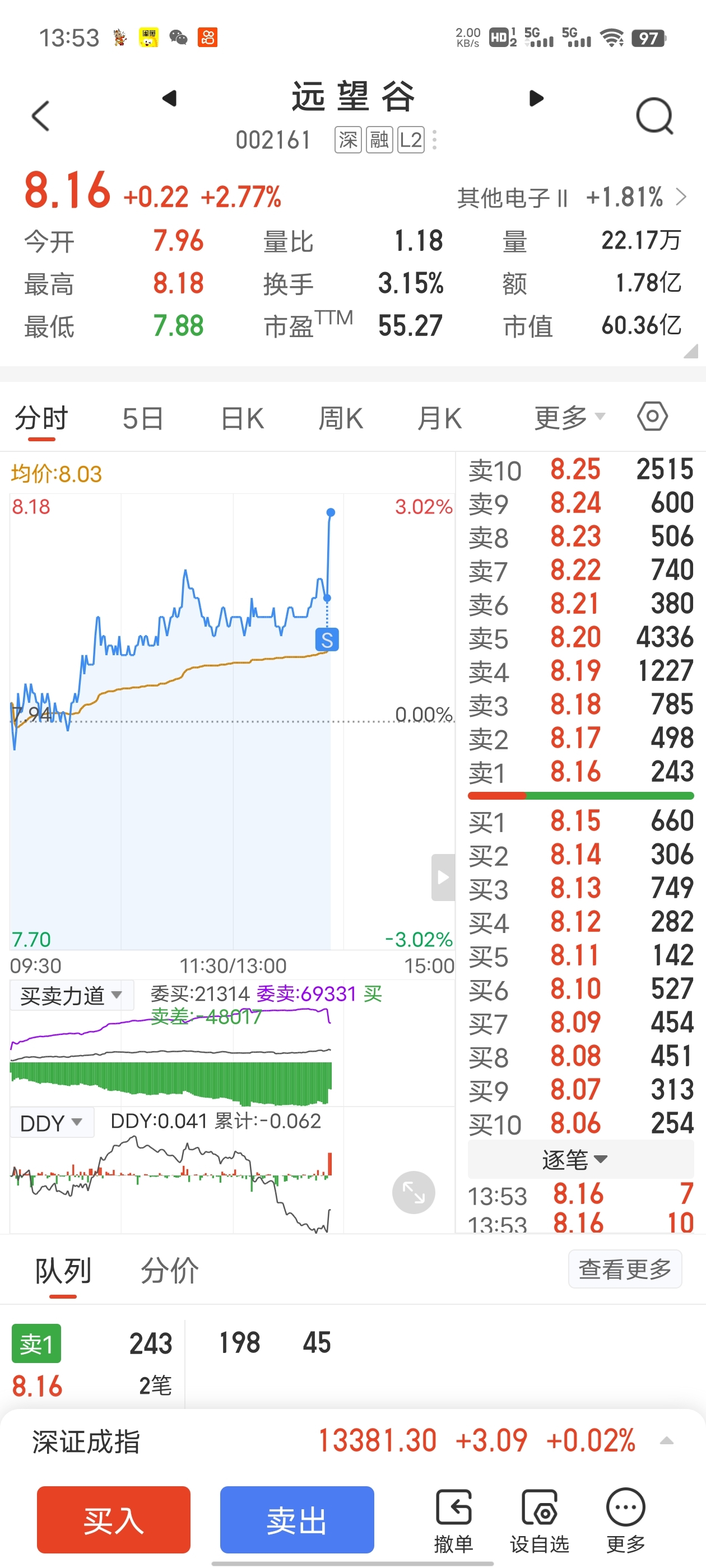 $远 望 谷(SZ002161)$ 盯着我手里的一点筹码