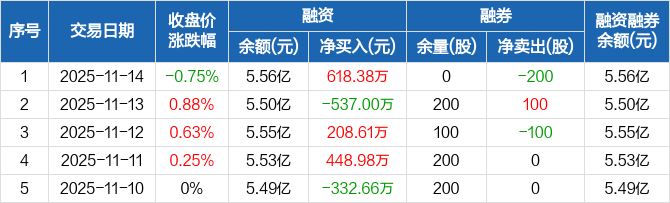 远望谷:融资净买入618.38万元,融资余额5.56亿元(11-14)