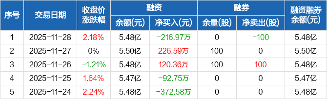 远望谷:融资净偿还216.97万元,融资余额5.48亿元(11-28)
