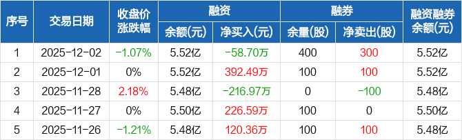 远望谷:融资净偿还58.7万元,融资余额5.52亿元(12-02)