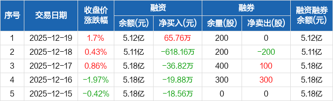 远望谷:融资净买入65.76万元,融资余额5.12亿元(12-19)