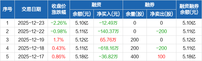 远望谷:融资净偿还12.49万元,融资余额5.1亿元(12-23)