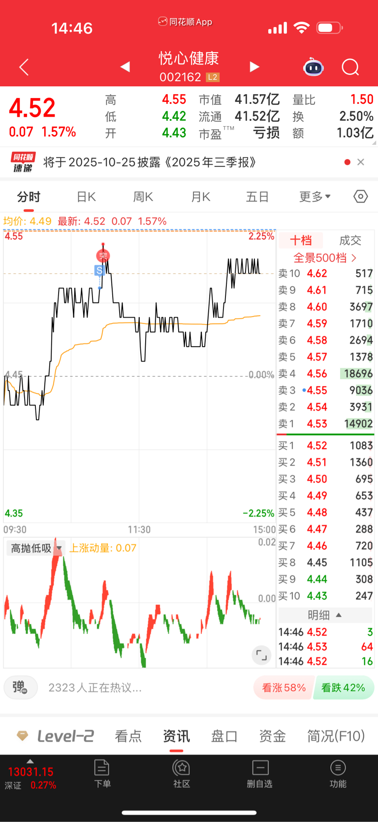 $悦心健康(SZ002162)$ 压单真狠
