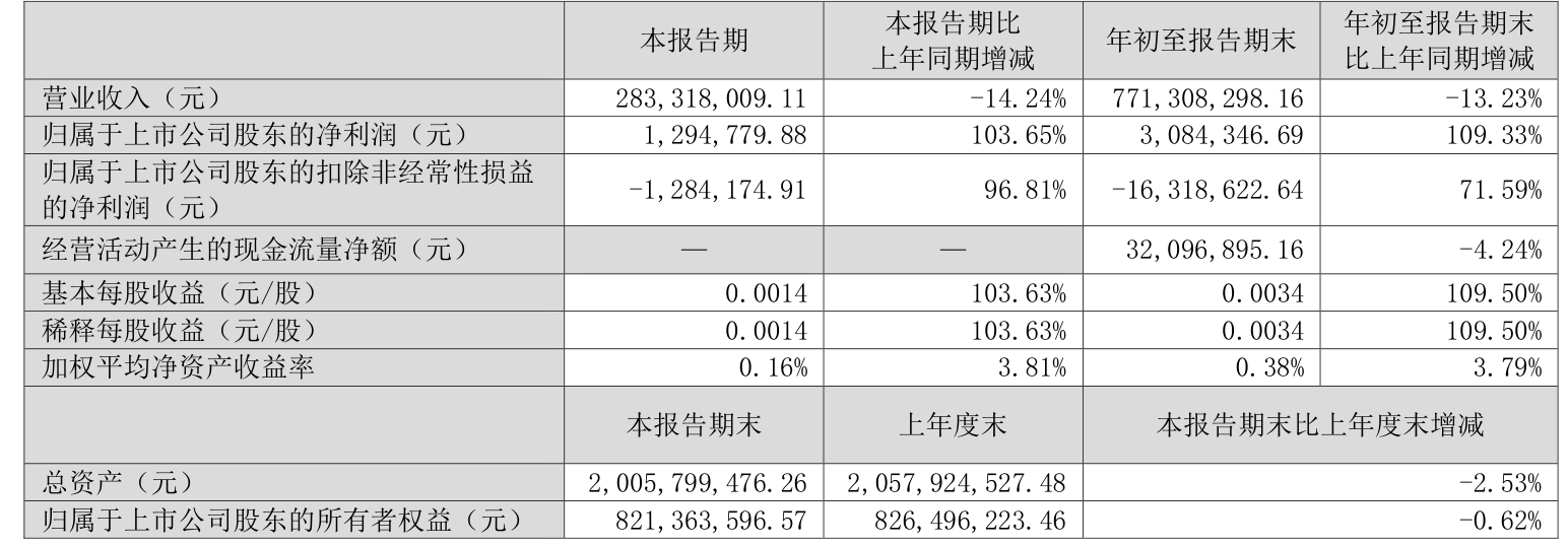 中证智能财讯悦心健康(002162)10月25日披露2025年第三季度报告。前三季度公司实现营业总收入7.71亿元,同比下降13.23%;归母净利润308.43万元,同比扭亏;扣非净利润亏损1631.86万元,上年同期亏损5744.24万元;经营活动产生的现金流量净额为3209.69万元,同比下降4.24%;报告期内,悦心健康基本每股收益为0.0034元,加权平均净资产收益率为0.38%。