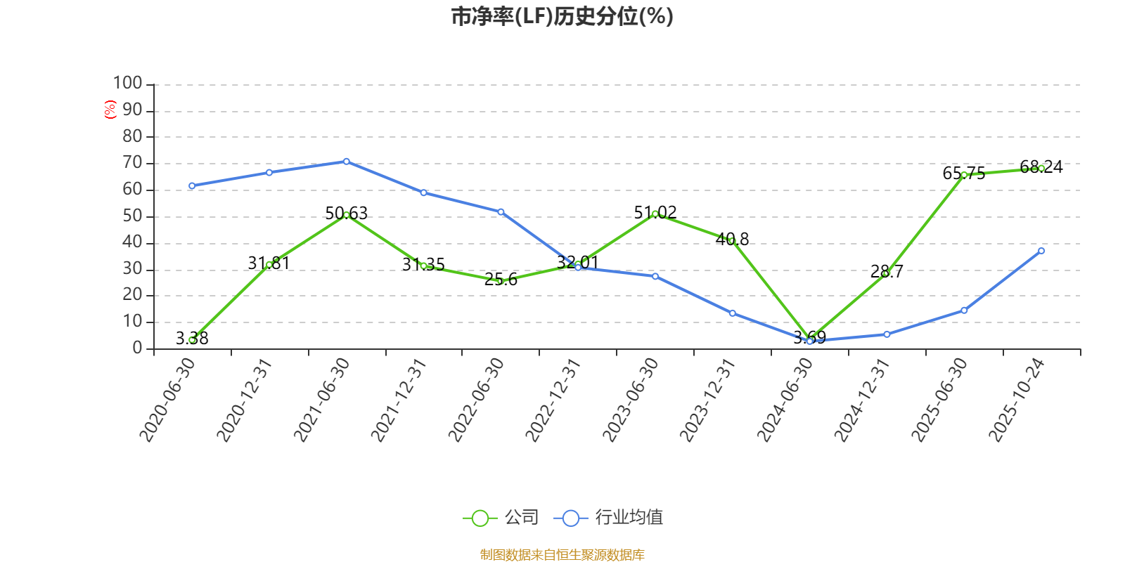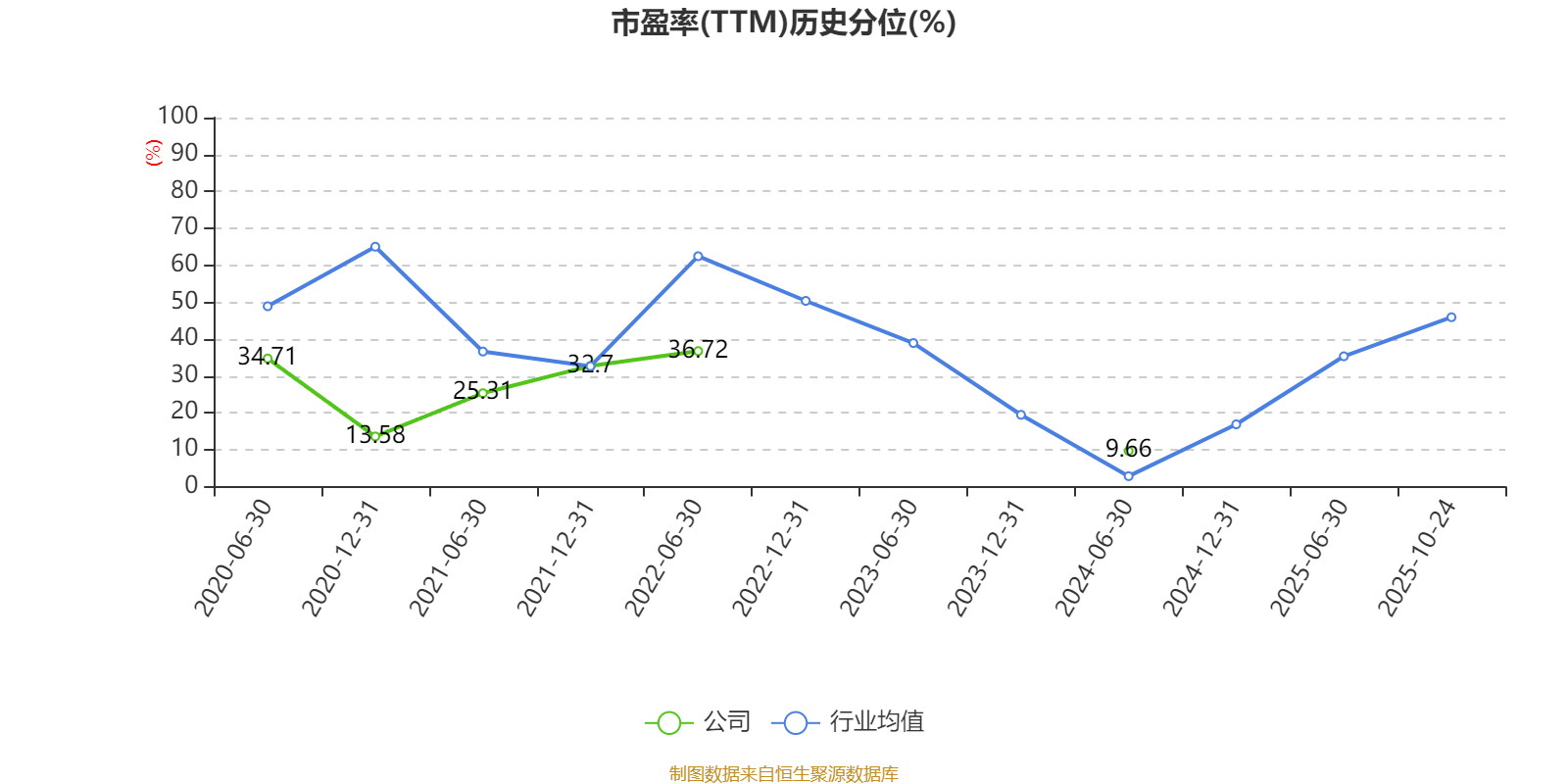 市盈率、市净率为负时,不显示当期分位数,会导致折线图中断。