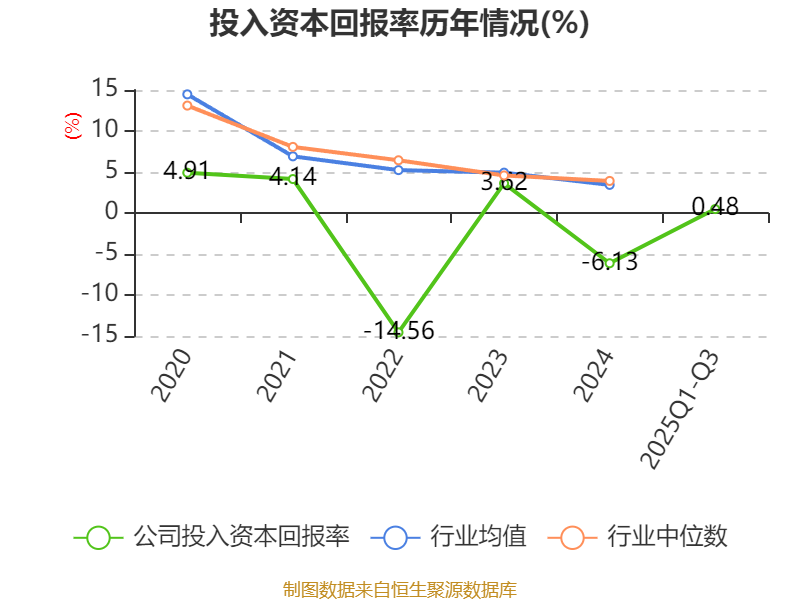 盈利能力方面, 2025年前三季度公司加权平均净资产收益率为0.38%,同比上升3.79个百分点。公司2025年前三季度投入资本回报率为0.48%,较上年同期上升1.5个百分点。