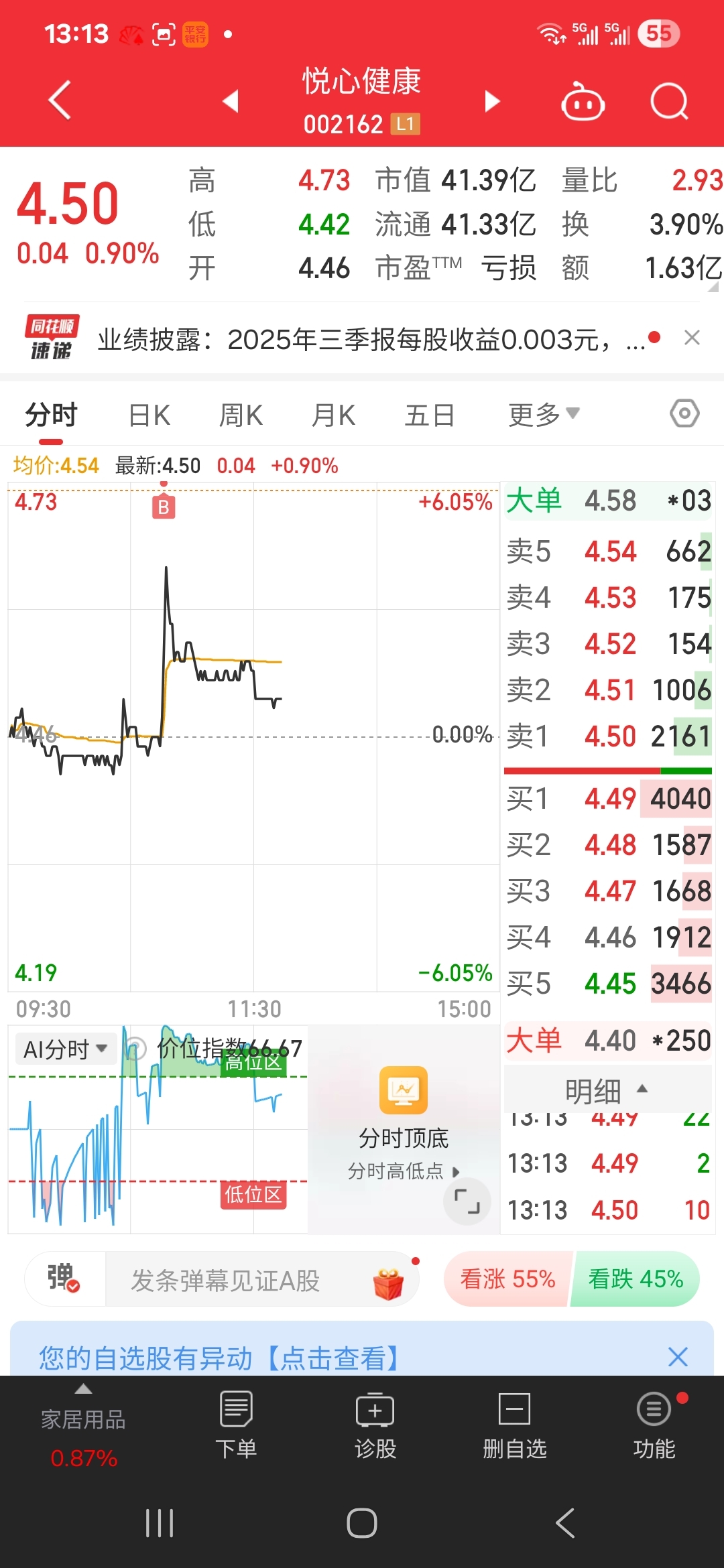$悦心健康(SZ002162)$ 满仓,家人们。买完就后悔了。明天割