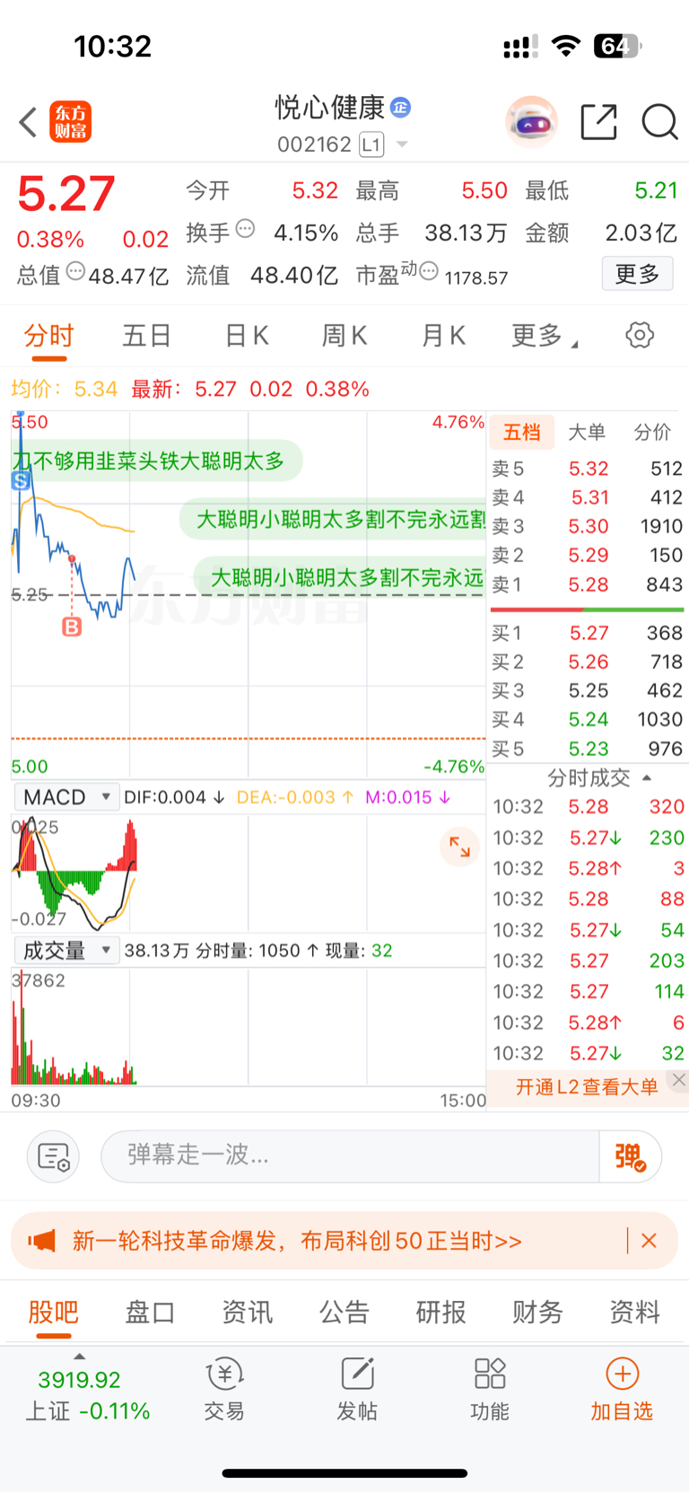$悦心健康(SZ002162)$ 做t,卖的位置可以,买的不理想。