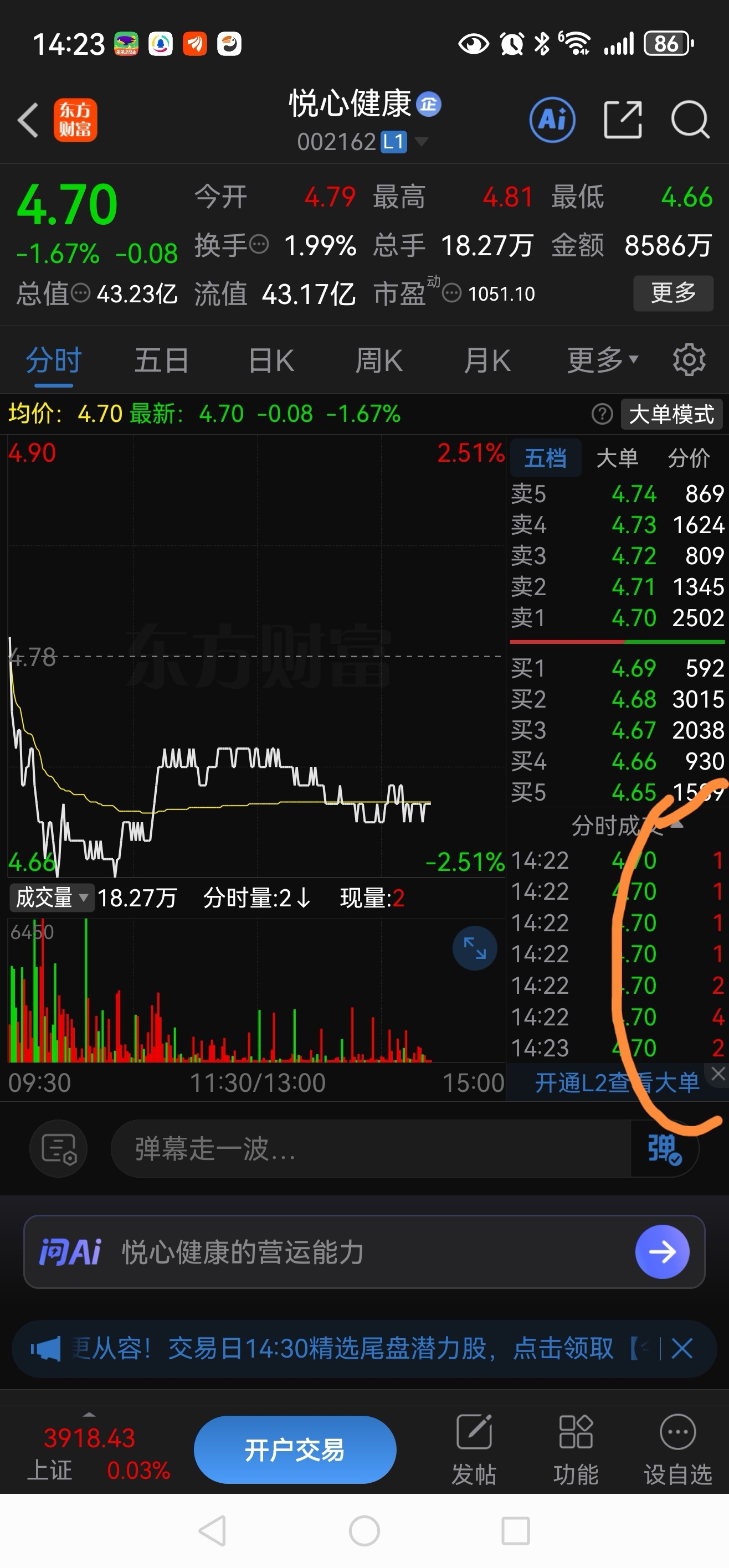 $悦心健康(SZ002162)$ 看你们谁敢买,昨天都跟你们说了,这货不能买,你们不听还在幻想上涨。别做梦了量化自己在玩了,没人买了。