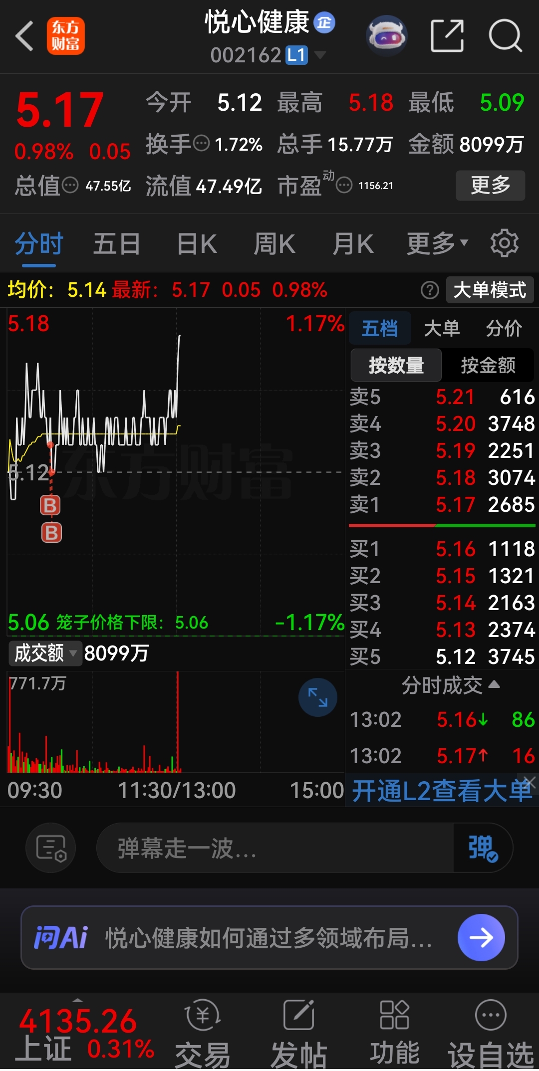 $悦心健康(SZ002162)$ 赶紧抢筹码
