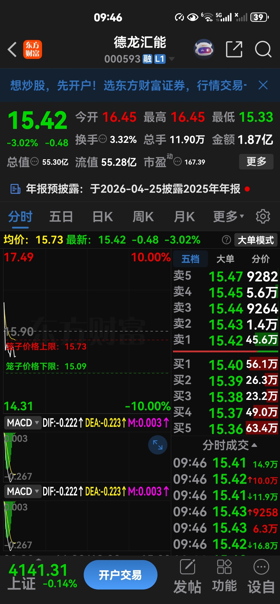 【出悦心健康换德龙汇能】买进价15.42元,一切尽在不言中!每天一股,拒绝马后炮